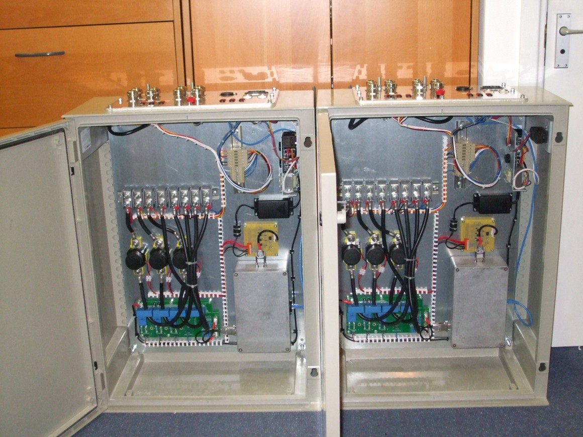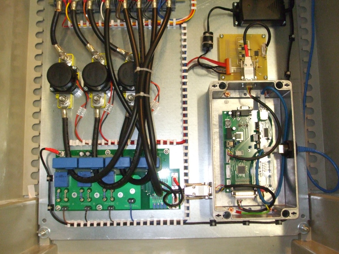 Not everything at MKE is low power or tiny. The next three pictures are of two fault simulator boxes made to switch 150A three phase supplies to an aircraft system under test. These were part of a much bigger project which included a lot of MATLAB and VB software running on PCs and controlling various resources via Ethernet and CAN.